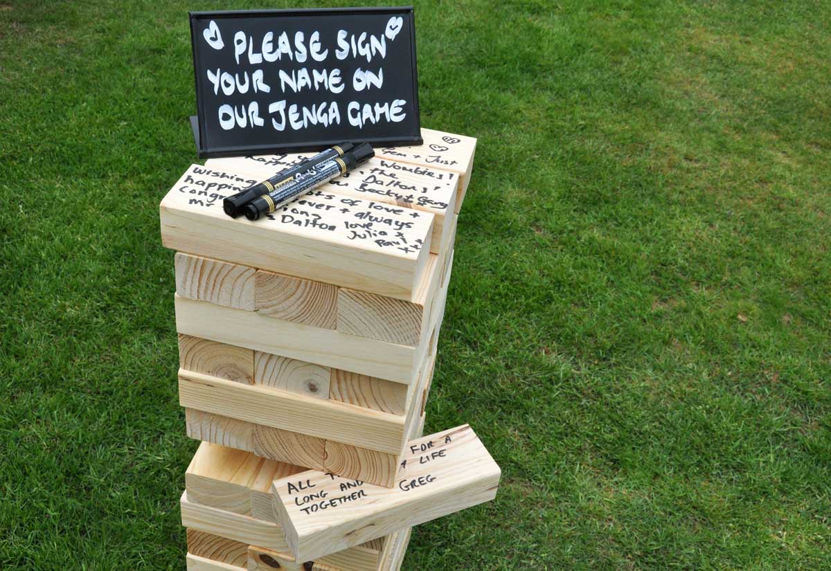 When you first arrive at your wedding reception your guests may want to let off a little steam. This Jenga idea is brilliant for children & adults alike Most people are familiar with the game ‘Giant Jenga’ so as you pull out the wooden block you write a special message on it for your Bride & Groom; then pop it on the top until it falls over. Once people have played it a few times, other guests have more of a chance of picking a wooden block with a heart felt message on it and the happy couple get to take it home and read what everyone has written. The game can then come out when you have people over or go to a BBQ to remind you of your special day. This idea encourages your guests to take part in the DIY tasks for your wedding day.