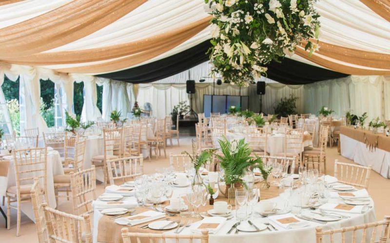 You can choose to have fresh flowers adorning the marquee, giving a wonderful aroma and fresh appearance to the interior; either freestanding or as table decorations throughout. Perhaps you would like the popular paper lanterns to hang in many colours from the ceiling of the marquee, or you may think you would prefer chandeliers to hang ornately from the top.